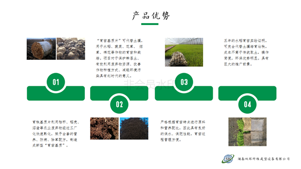本產(chǎn)品針對水稻旱育苗大量挖取耕層土,耕層破壞嚴峻的現(xiàn)實,利用秸稈、蘑菇菌糠、稻殼、沼渣等農(nóng)林廢棄物經(jīng)過工廠化快速熟化,賦予全套的營養(yǎng)、防病、除草配方,制造成新型的嶄新的“無土育苗基質”。
